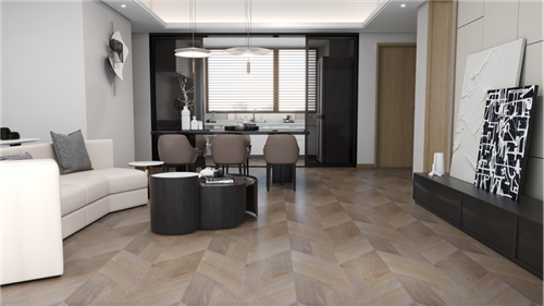 能創造出與眾不同的組拼方案的宮爵R系列,通過創意規格、角度、比例研制出的創意魚骨拼地板,精選白櫟木面材,配以細膩絲滑的9°珍珠漆面,輔以拉絲工藝,完美呈現原木質感,而錯落有致的平行四邊形排列,更是精致而富有層次。與以往刻意的魚骨拼貼方式不同的是,宮爵R系列把拼法自由交給設計師和消費者,擁有撲面而來的高級輕奢質感,更能彰顯主人的不凡品味。