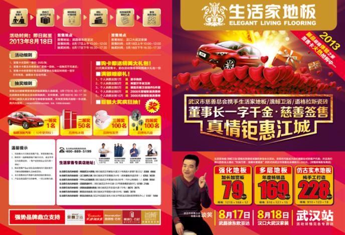 為回饋廣大消費者對生活家地板品牌多年來的信賴與支持,武漢市慈善總會攜手生活家地板共同舉辦董事長慈善簽售會,一字千金,真情回饋江城消費者。