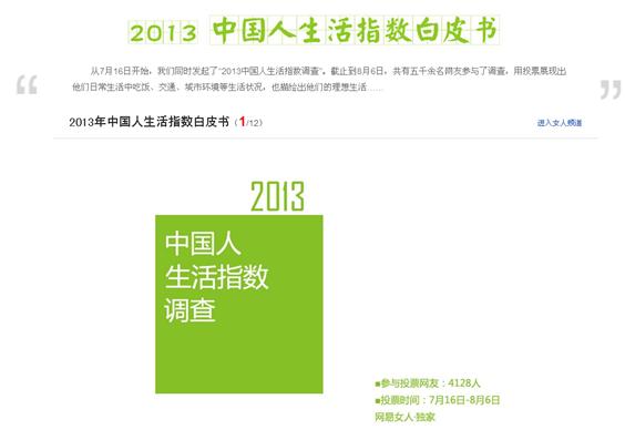 點擊這里進入《2013中國人生活指數白皮書》:http://lady.163.com/special/sense/life306.html#p=9737SIDN513O0026