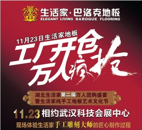 【湖北】第二屆湖北生活家地板“工廠開倉 萬人瘋搶”團購暨生活家手工地板藝術文化節