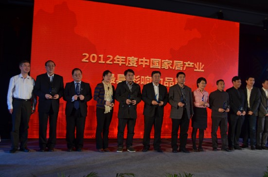 (生活家集團(tuán)董事長(zhǎng)特別助理 李培新 [左起第二]接受"2012年度中國(guó)家居產(chǎn)業(yè)最具影響力品牌" 頒獎(jiǎng)儀式)