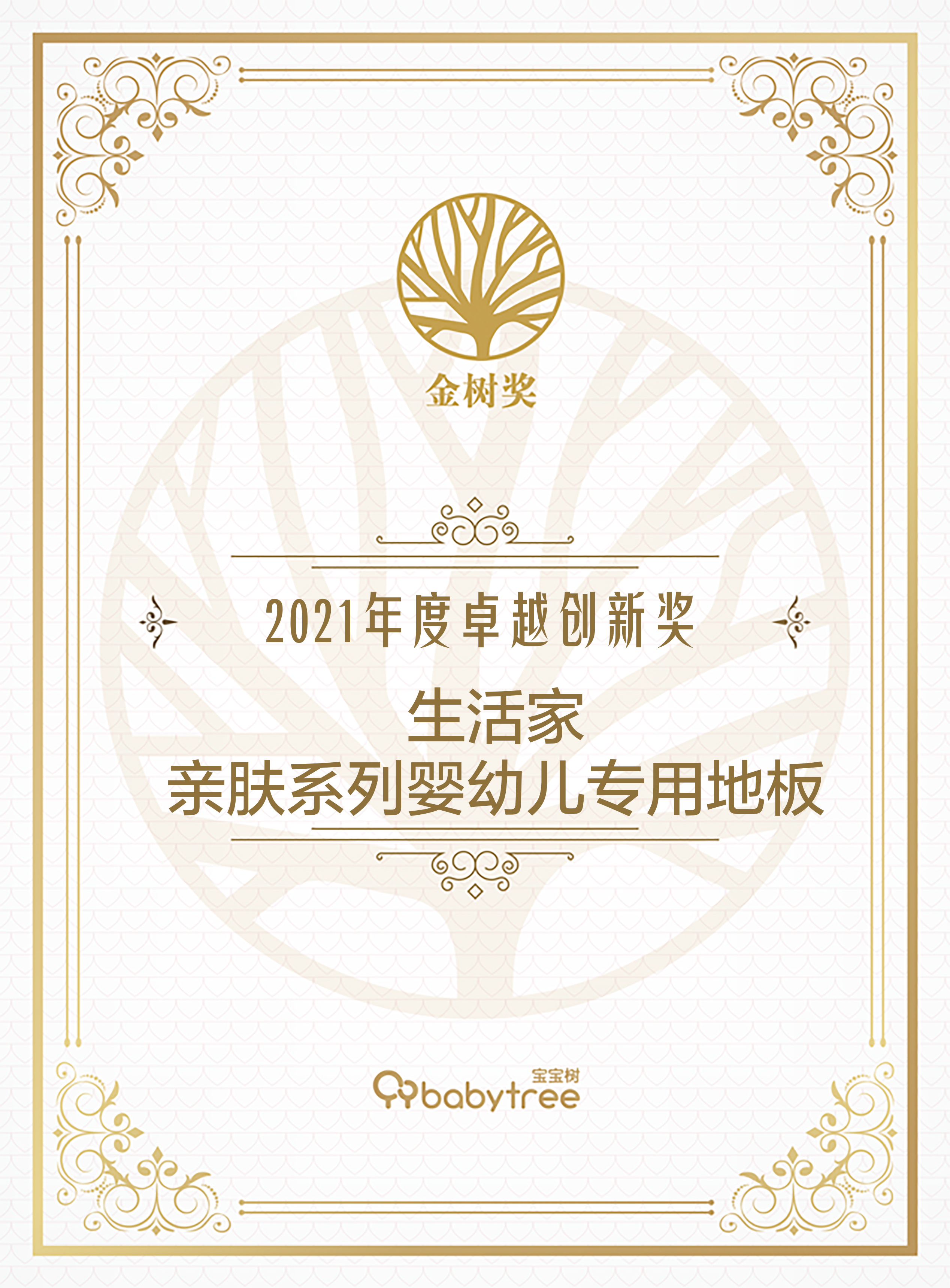 12月2日,被譽(yù)為“母嬰界奧斯卡”的金樹獎名單正式揭幕,備受吳敏霞和其他媽媽們贊譽(yù)的生活家地板嬰幼兒專用產(chǎn)品憑借健康環(huán)保的產(chǎn)品品質(zhì)、突出的創(chuàng)新技術(shù)斬獲寶寶樹2021年度卓越創(chuàng)新獎。