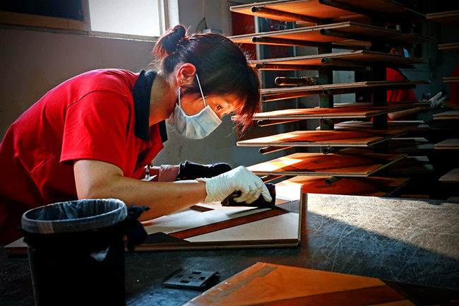 生活家質檢部門是最挑剔的、也最有權威的部門,任何一個細節的瑕疵都逃不過質檢人員的法眼。木皮、基材、膠水、油漆等原材料,從進廠開始都要由經CNAS評定認可的實驗室進行逐一檢測。特別是對于用來生產生活家·巴洛克手刮仿古地板的木板,更是要經過苛刻的單片挑選程序。由質檢人員一片、一片的進行手工挑選,不僅對材質有嚴格的標準,甚至連花色、紋理都相應的要求。