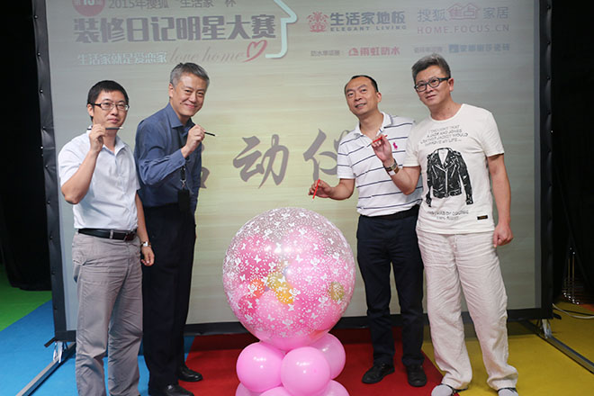 搜狐焦點家居副總經理朱大暉先生、生活家地板企劃中心總監詹宏先生、生活家地板老客戶于婷女士、北京裝修論壇總版主鵬游丹境以及2014年日記大賽全國總冠軍平民女De實木家裝應邀出席了本次啟動儀式。