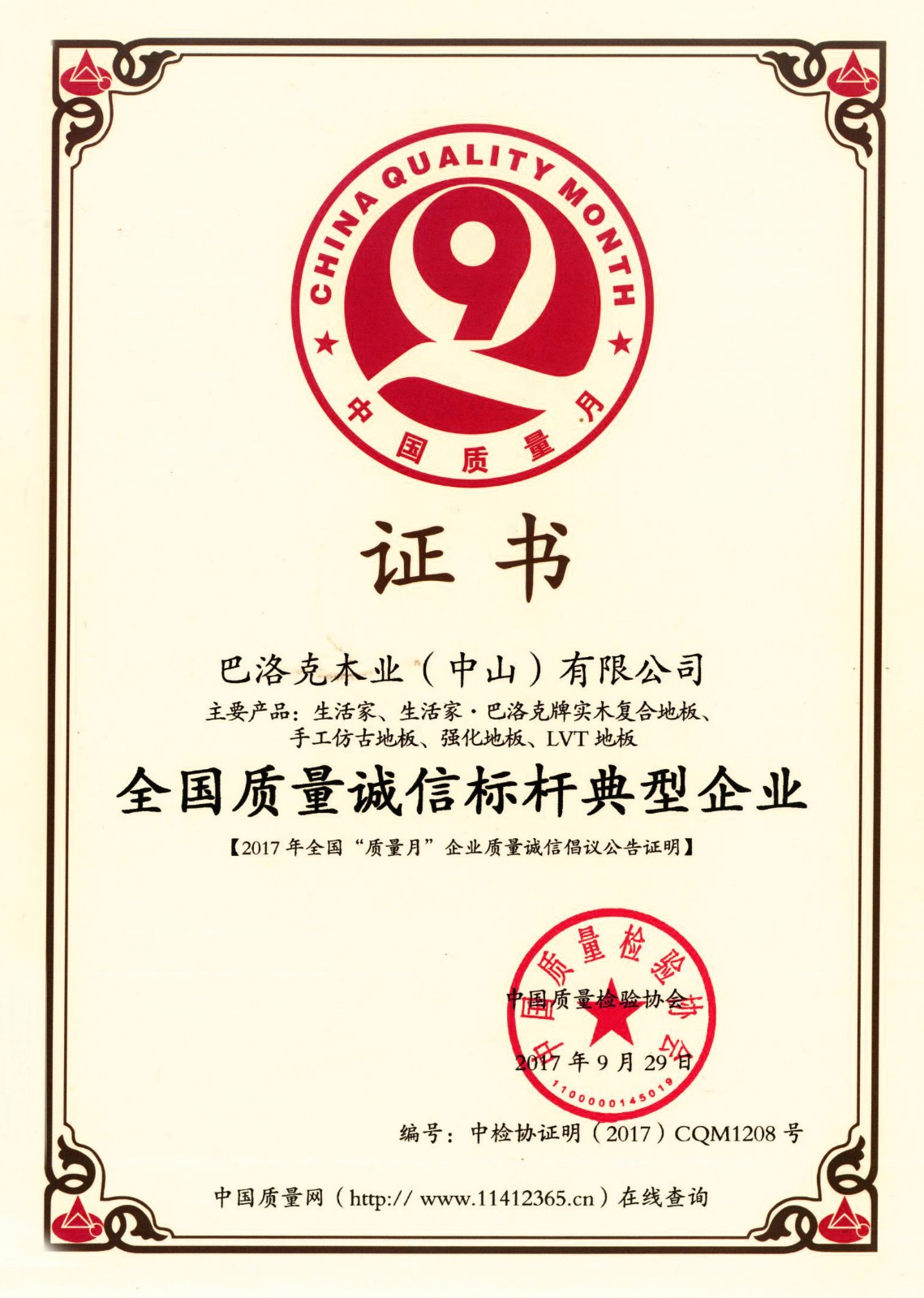 近日,由國家質檢總局聯合中共中央宣傳部、國家發改委等47個相關部門、行業協會等單位共同在2017年9月開展“大力提升質量,建設質量強國”為主題的2017年全國“質量月”活動中,生活家地板獲“全國質量誠信標桿典型企業”殊榮。