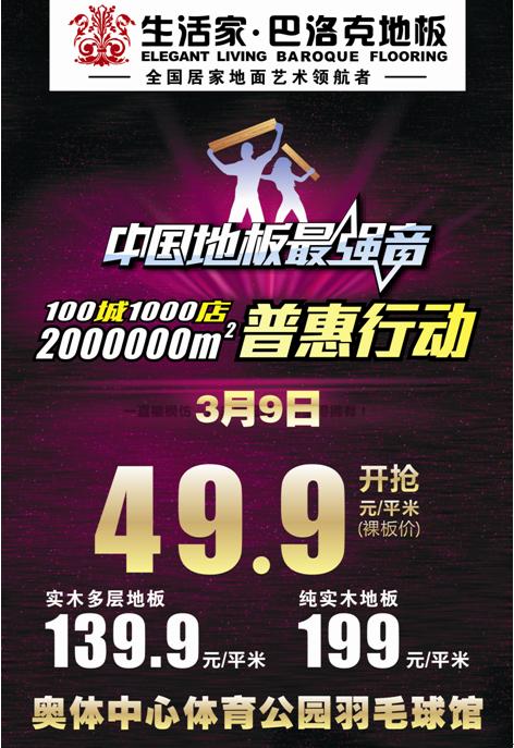【重慶】3月9日中國地板最強音100城1000店2000000平方米普惠行動