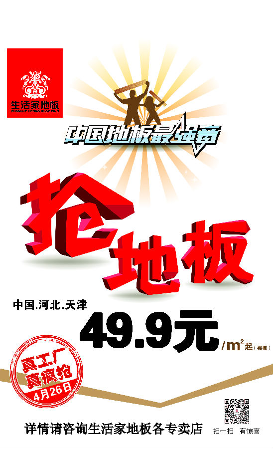 【天津】中國地板最強音-真工廠 真瘋搶 49.9元每平米起